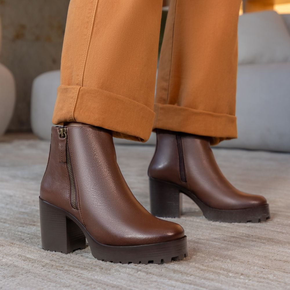 Bota Coturno Paola Plataforma Salto tratorado Chocolate
