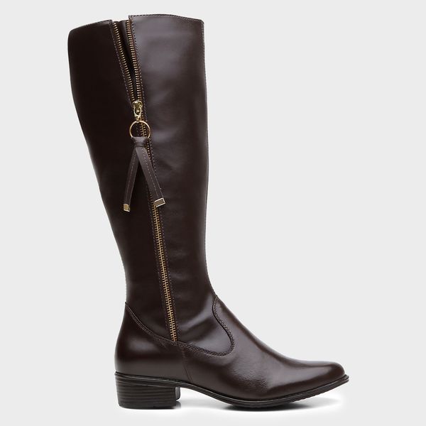 Com design elegante e toque contemporâneo, a Bota Montaria Rafaela é a escolha certa para quem busca sofisticação, conforto e presença. O zíper lateral dourado com puxador de couro garante estilo e praticidade, enquanto o acabamento liso e o salto baixo proporcionam versatilidade para o dia a dia. Seu cano alto valoriza as pernas e compõe looks urbanos, casuais ou elegantes com facilidade. Essa bota é uma peça indispensável no guarda-roupa de inverno.