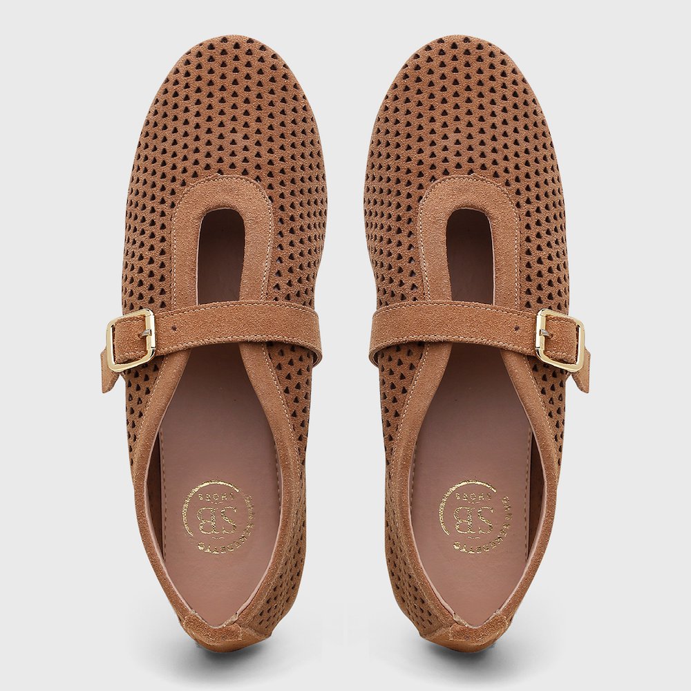 Sapatilha Feminina Eliza em Couro dobrável Caramelo