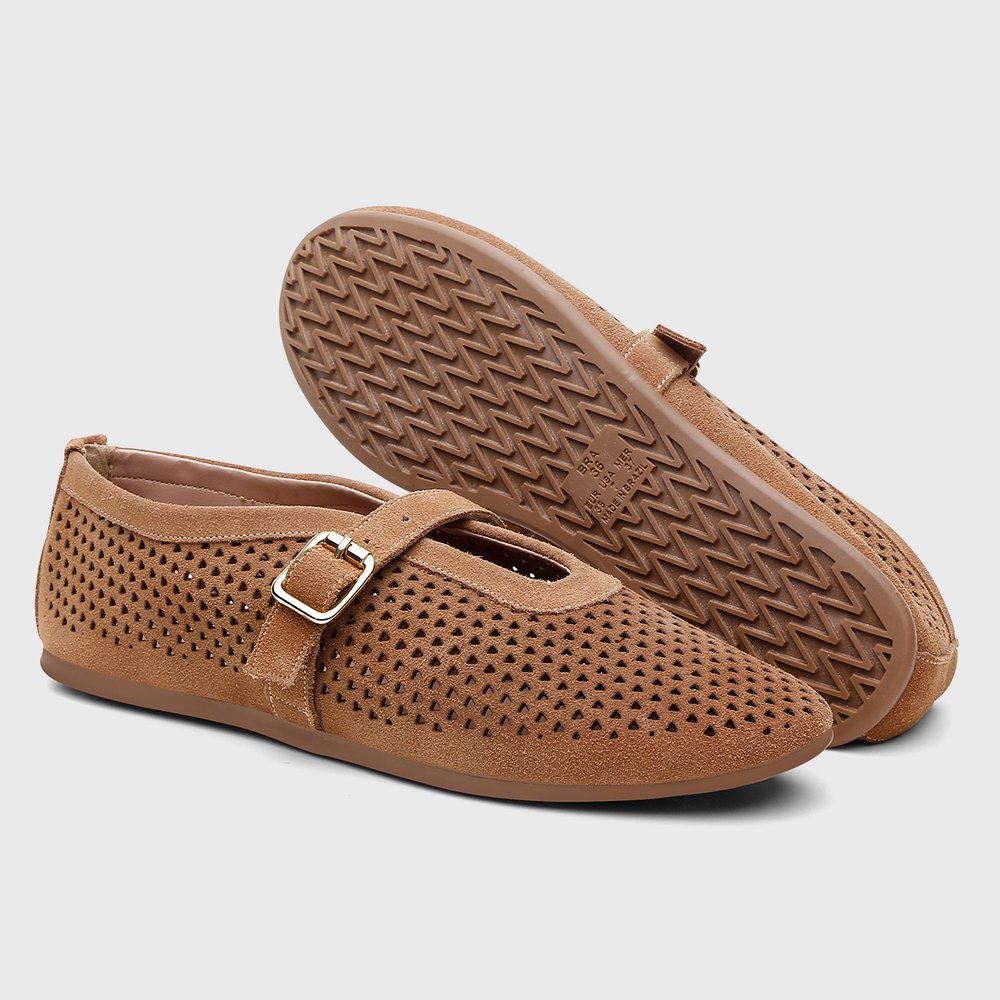 A Sapatilha Eliza combina conforto, praticidade e charme. Feita em couro legítimo caramelo, possui palminha acolchoada para conforto o dia todo e o enfeite de tira e fivela dá um toque feminino e sofisticado. Com sola leve e flexível e design dobrável, é prática para levar na bolsa ou mala, sem abrir mão do estilo. Versátil, a Eliza valoriza qualquer look, do casual ao elegante.