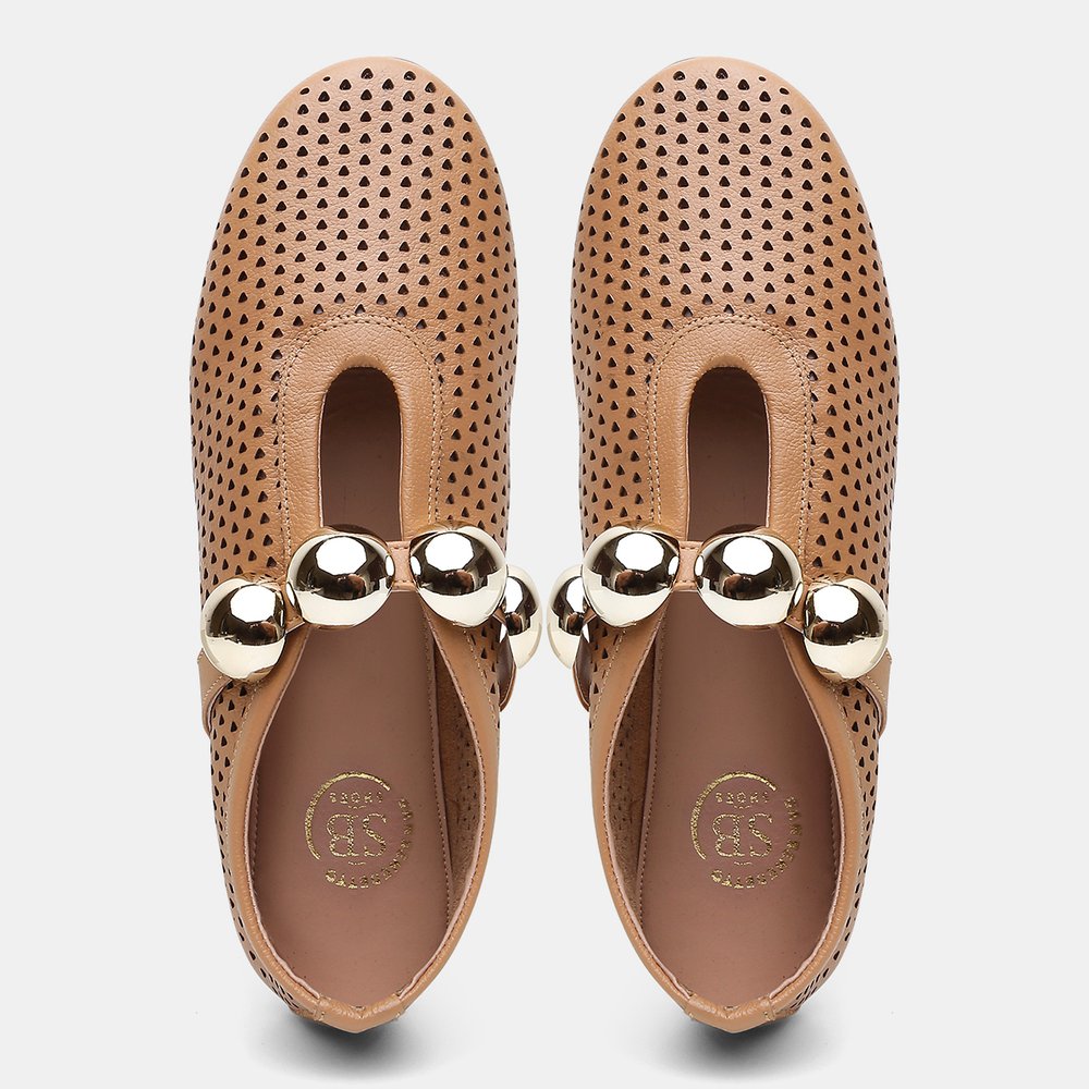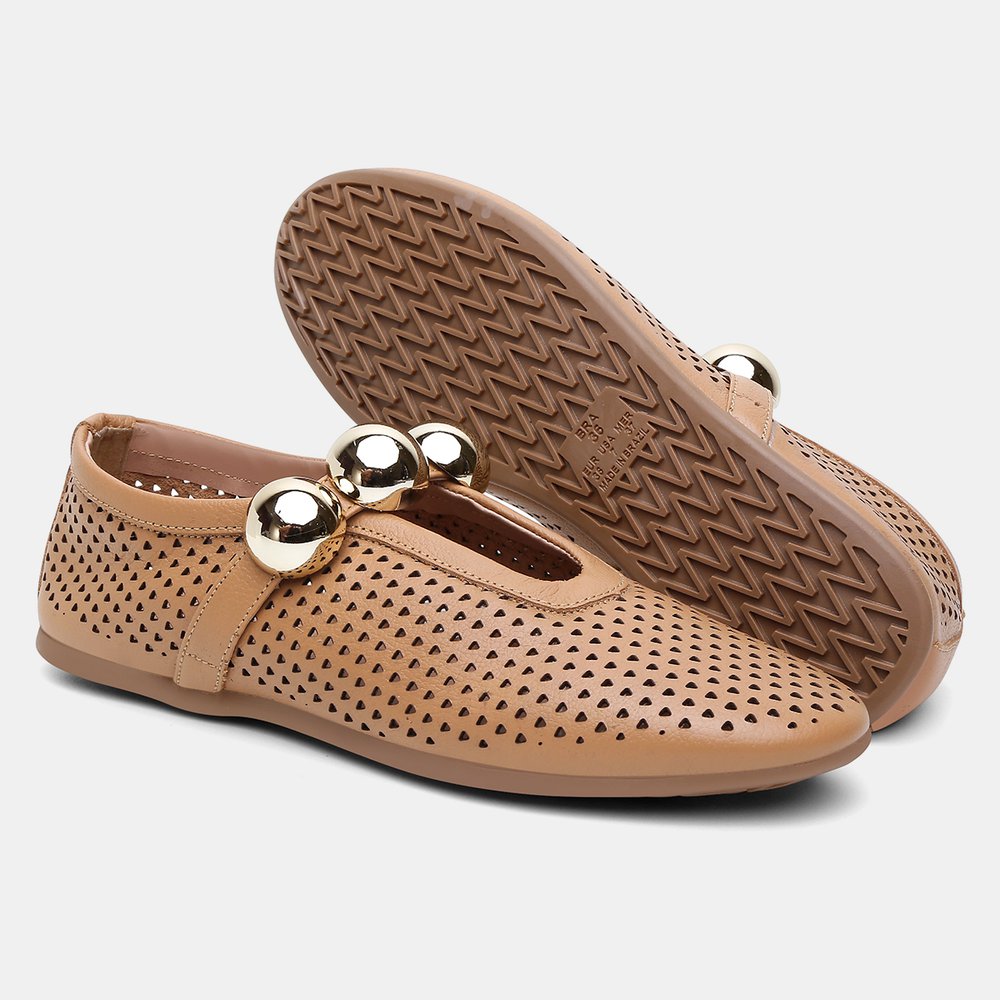 A Sapatilha Selena combina conforto, praticidade e charme. Feita em couro legítimo caramelo, possui palminha acolchoada para conforto o dia todo e o enfeite delicado na parte frontal dá um toque feminino e sofisticado. Com sola leve e flexível e design dobrável, é prática para levar na bolsa ou mala, sem abrir mão do estilo. Versátil, a Selena valoriza qualquer look, do casual ao elegante.