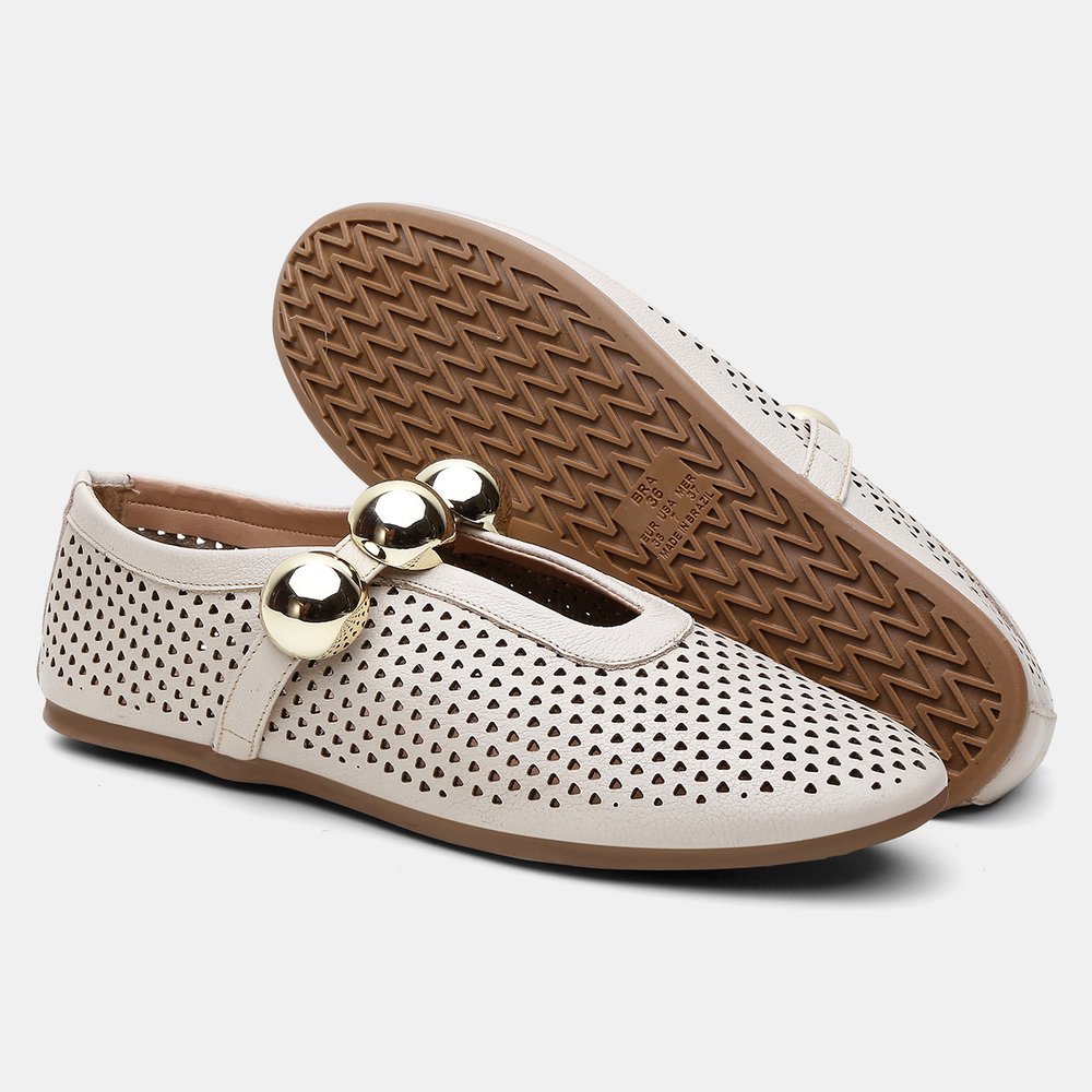 A Sapatilha Selena combina conforto, praticidade e charme. Feita em couro legítimo off white, possui palminha acolchoada para conforto o dia todo e o enfeite delicado na parte frontal dá um toque feminino e sofisticado. Com sola leve e flexível e design dobrável, é prática para levar na bolsa ou mala, sem abrir mão do estilo. Versátil, a Selena valoriza qualquer look, do casual ao elegante.